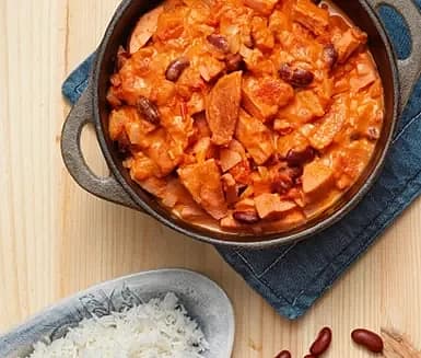 Korvstroganoff med kidneybönor och ris