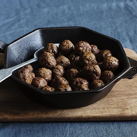 Veganska köttbullar med gräddsås och hasselbackspotatis