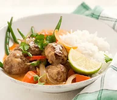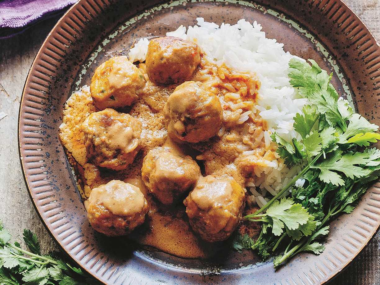 Indiska köttbullar i tikka masalasås med blomkålsris