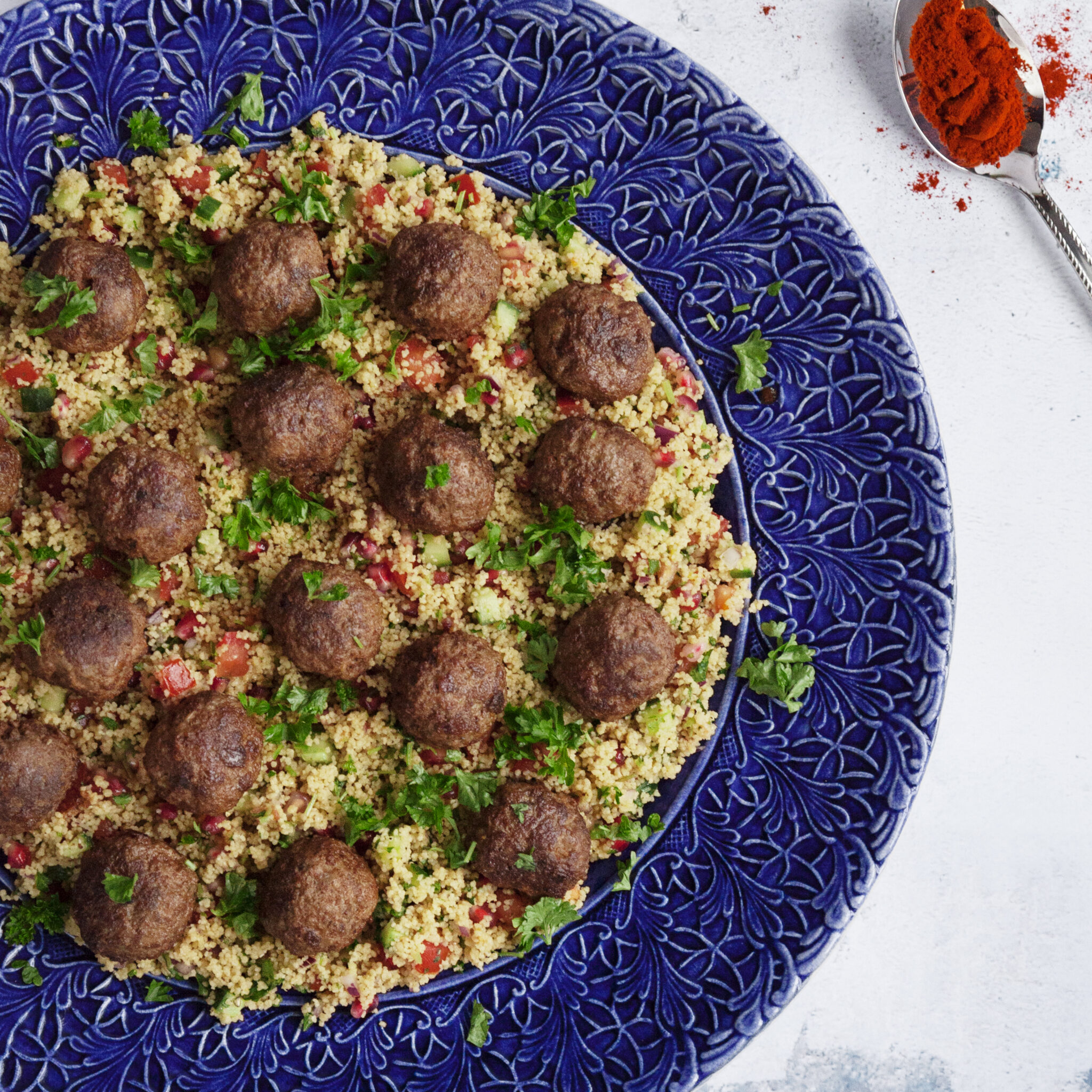 Kryddiga köttbullar med tabbouleh och myntayoghurt
