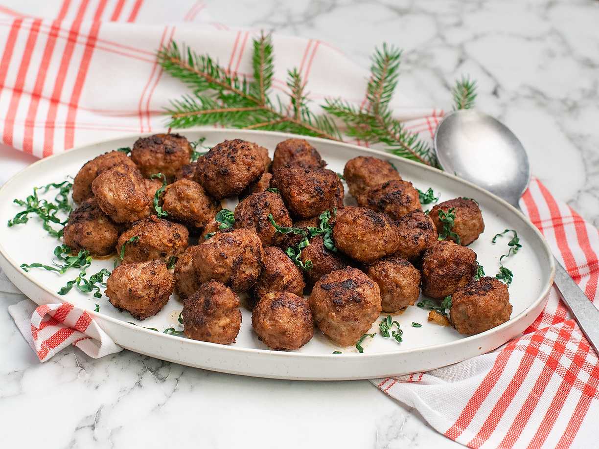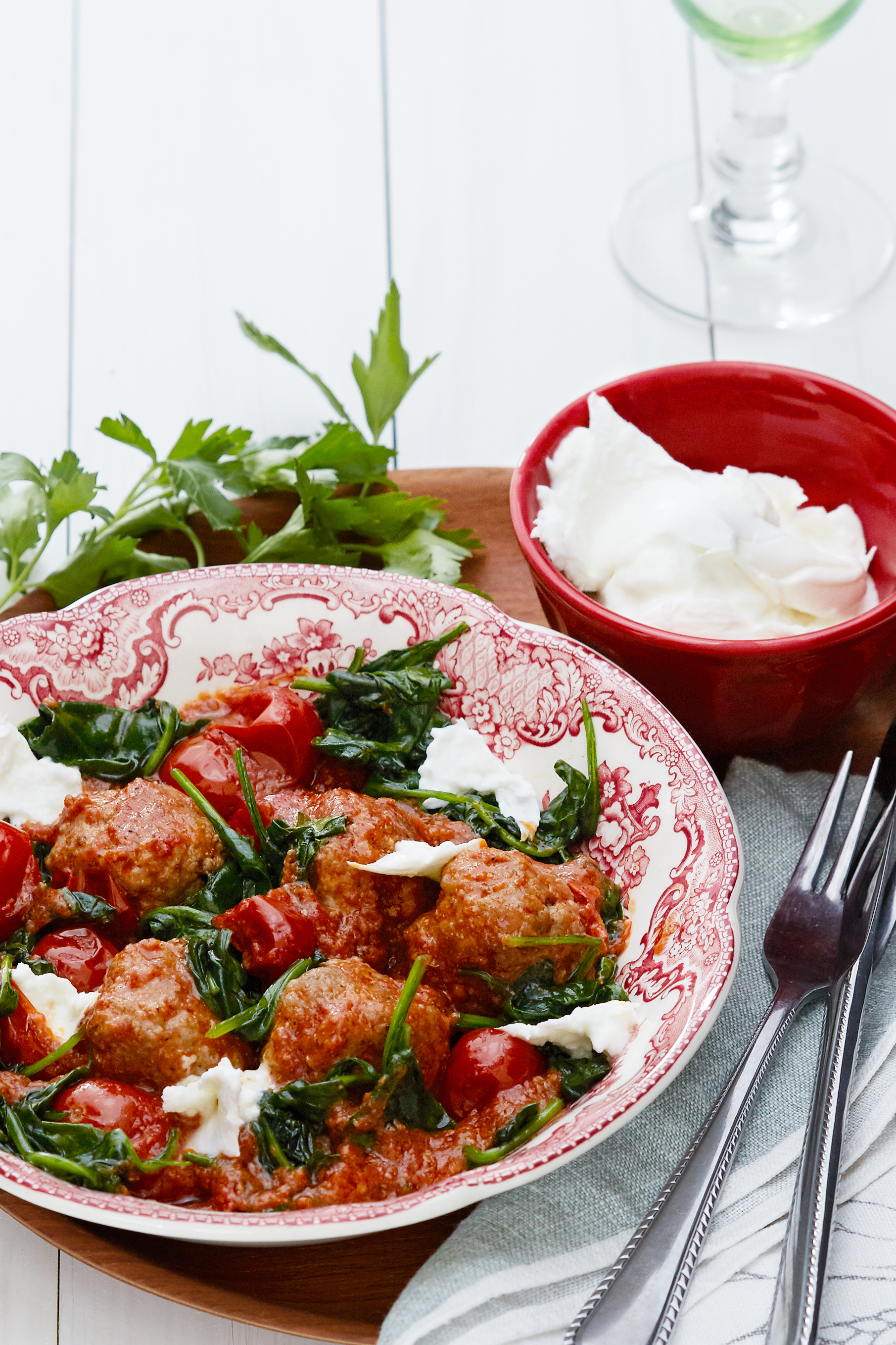 Italienska köttbullar i tomatsås med basilikarostad potatis
