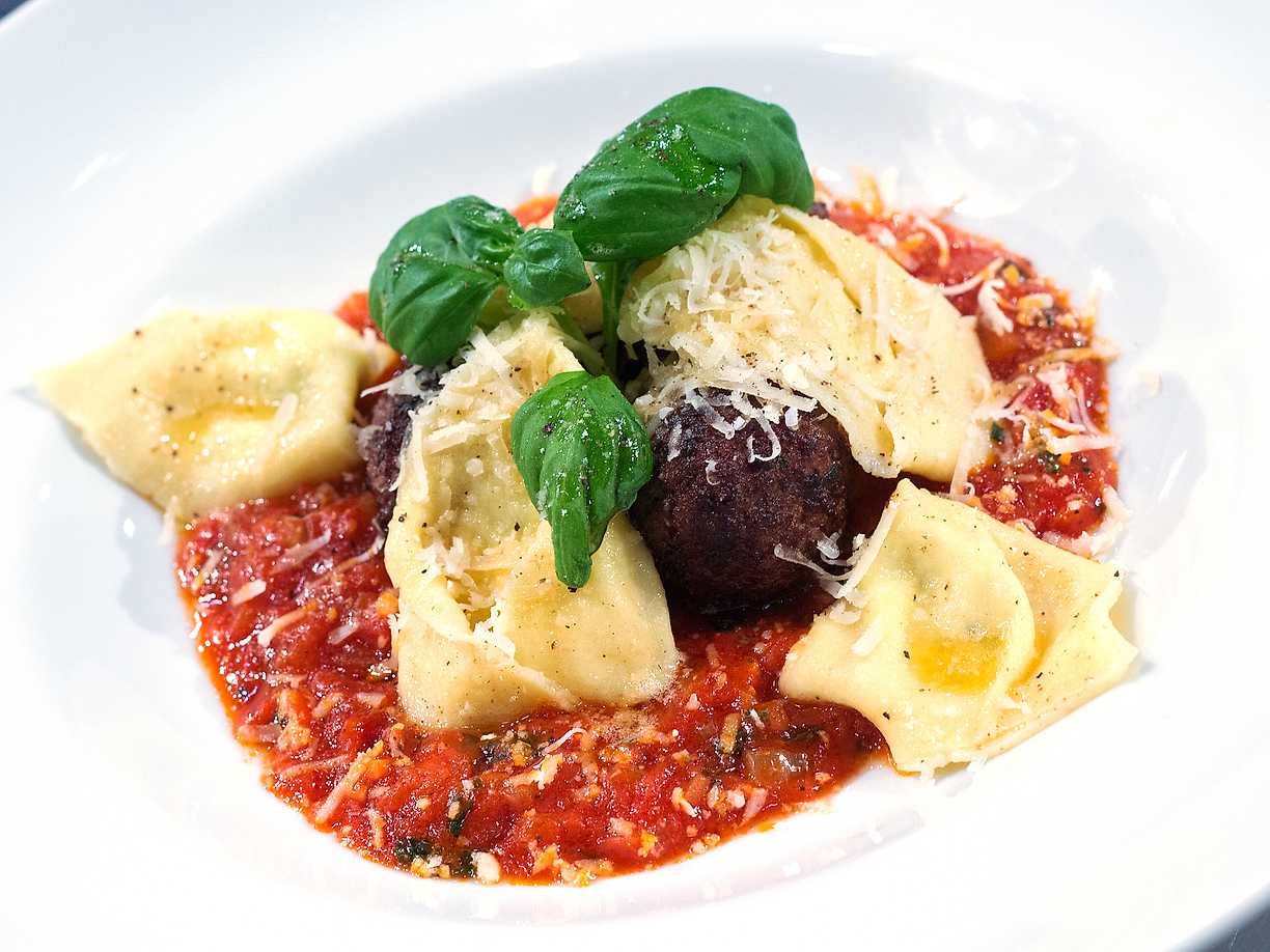 Citron- och ricottafylld tortellini med italienska köttbullar och härlig tomatsås