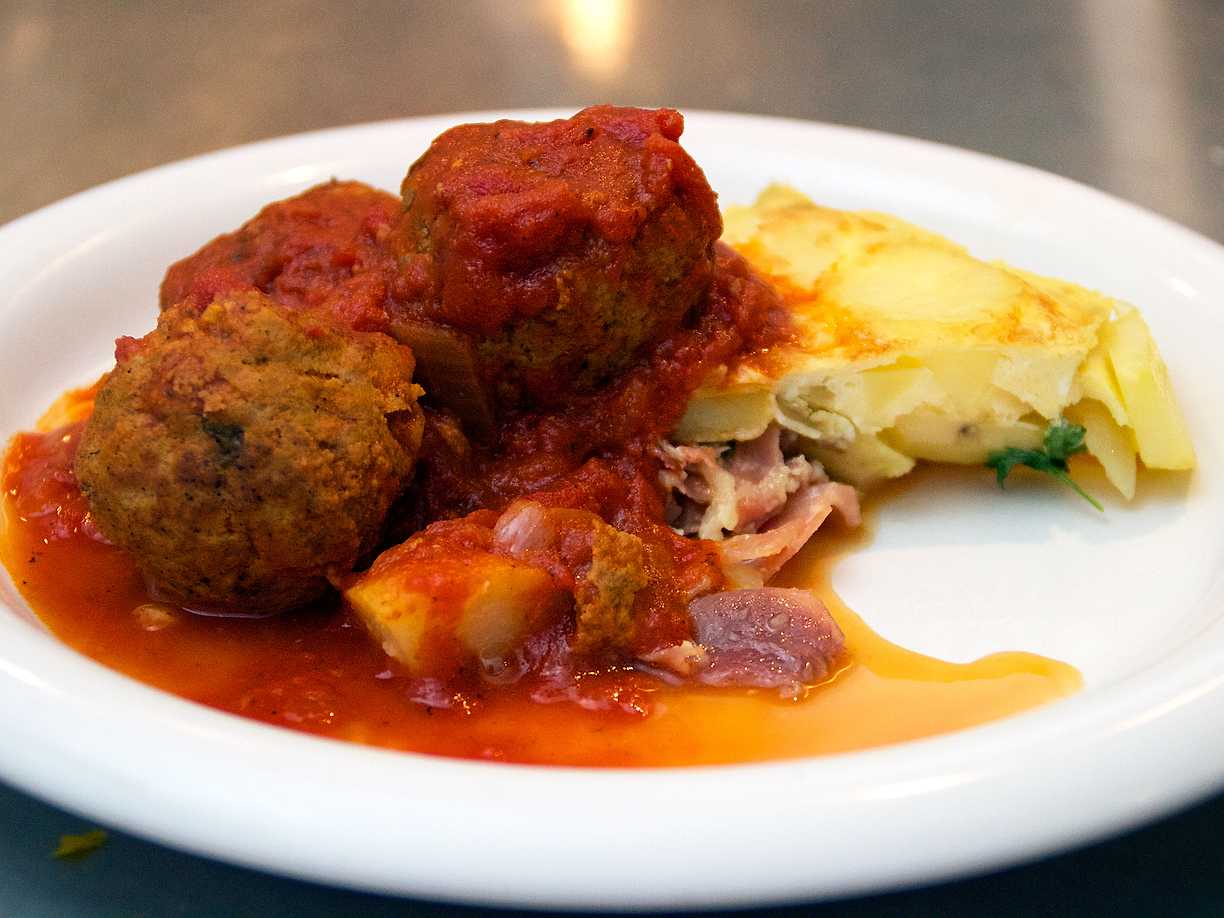 Italienska köttbullar i tomatsås med grönsaksstavar