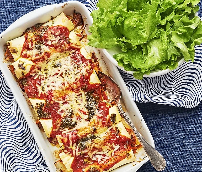 Köttfärs i filodeg med vitlök, paprika och fetaost