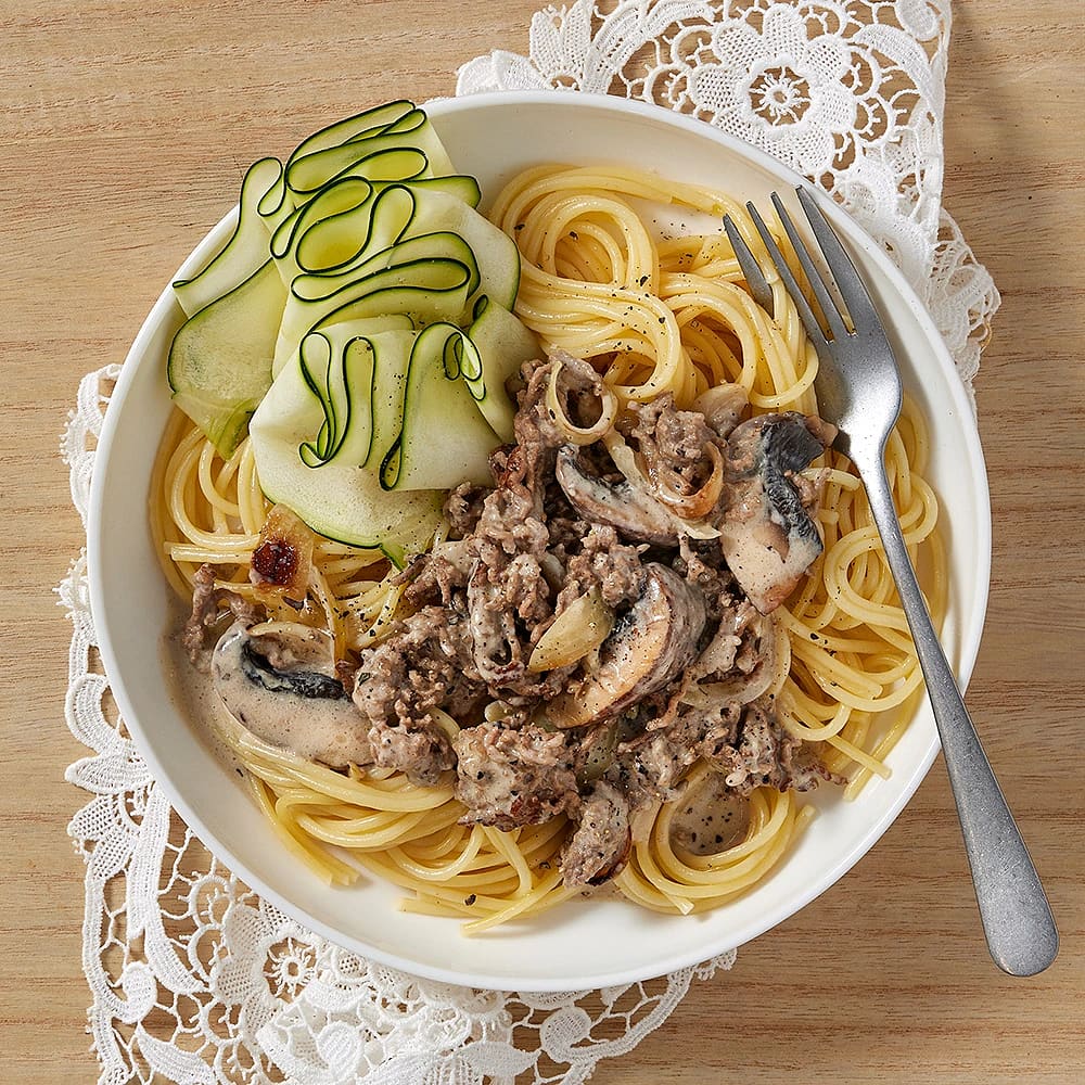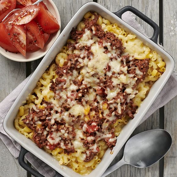 Köttfärs- och zucchinigratäng med blomkål och mozzarella