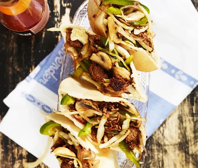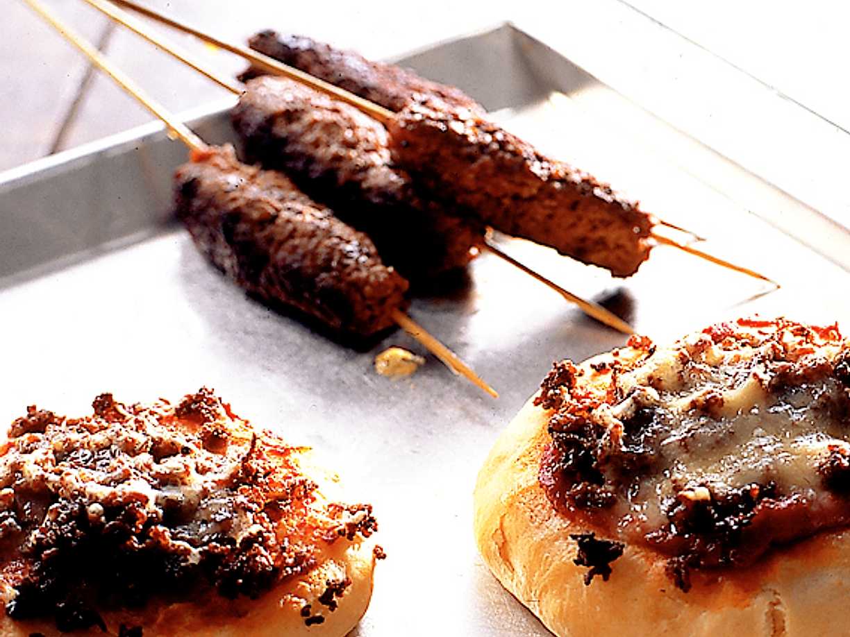 Libanesiskt bröd fyllt med köttfärs och hummus