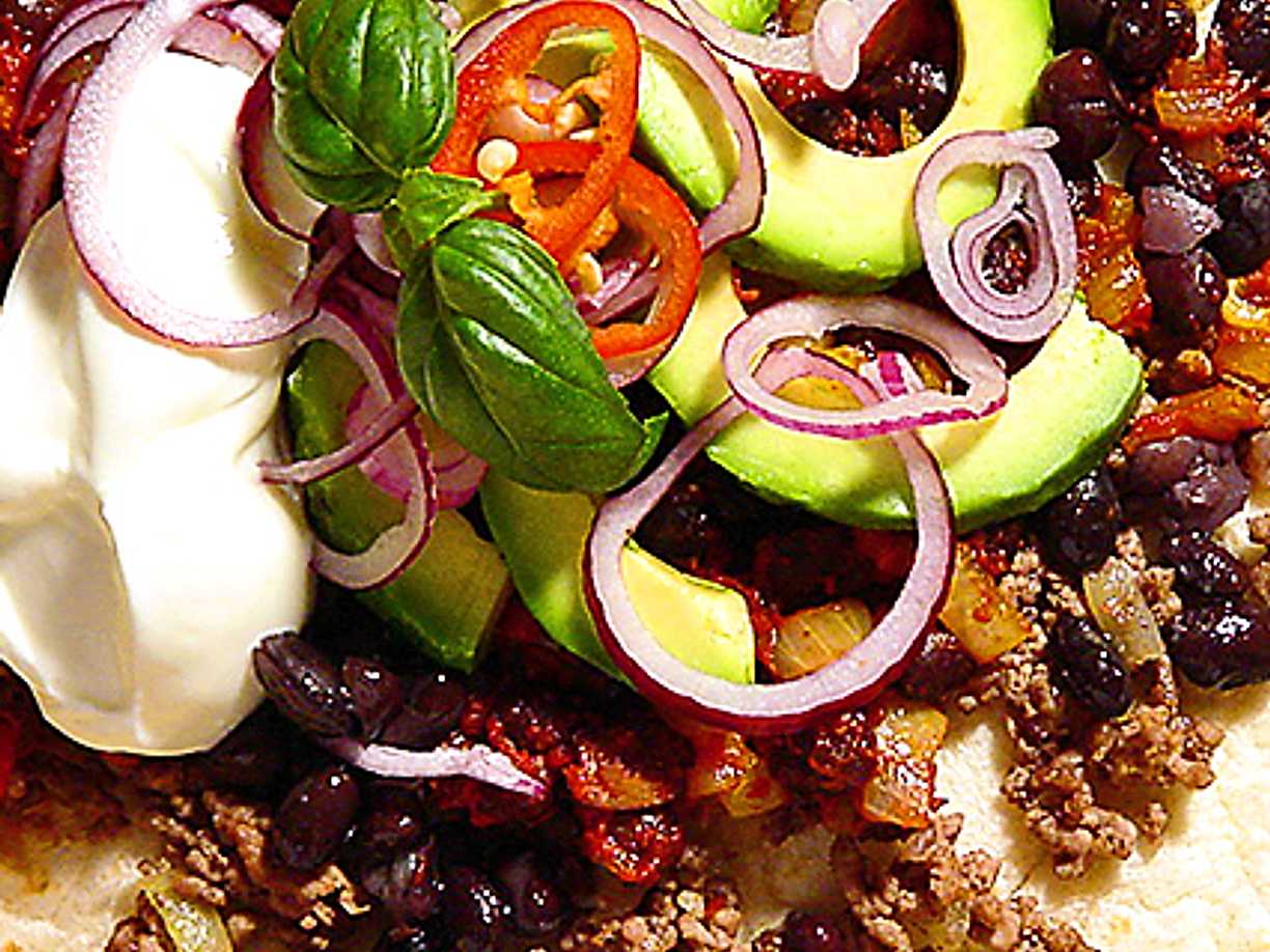 Tacogratäng på överbliven tacosås, köttfärs och Philadelphia
