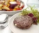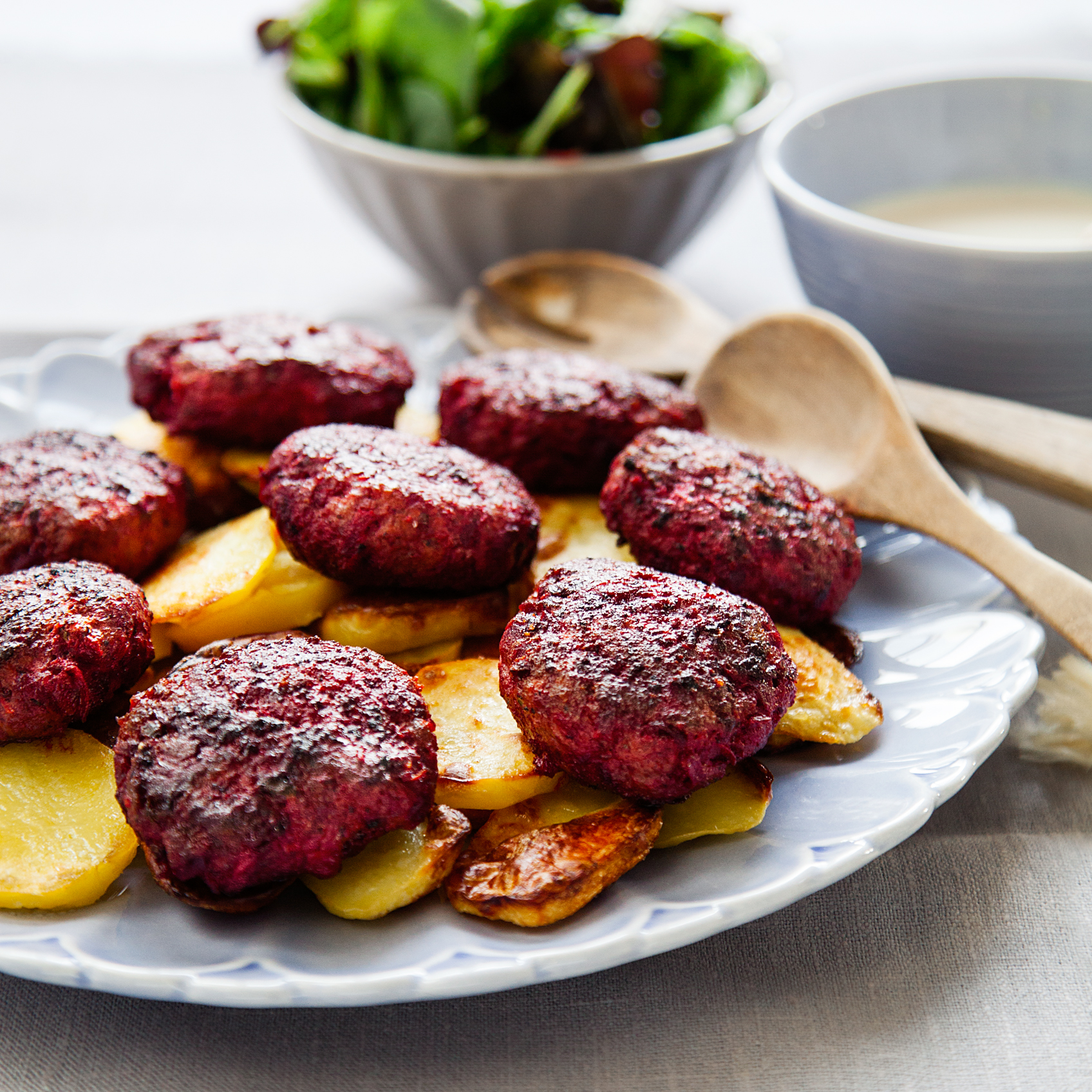 Köttfärsbiffar med rödbetor och kapris och rostad potatis