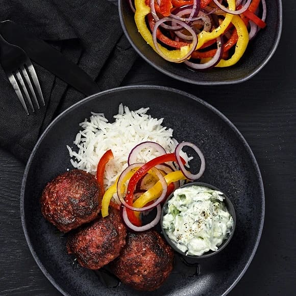 Köttfärsbiffar med tomatbulgur och tzatziki