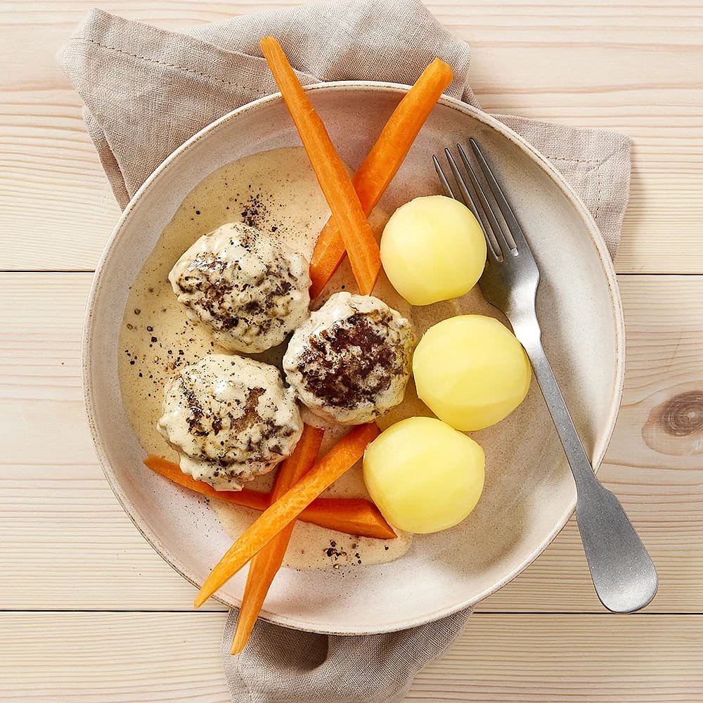 Köttfärsbiffar med pepprig sås