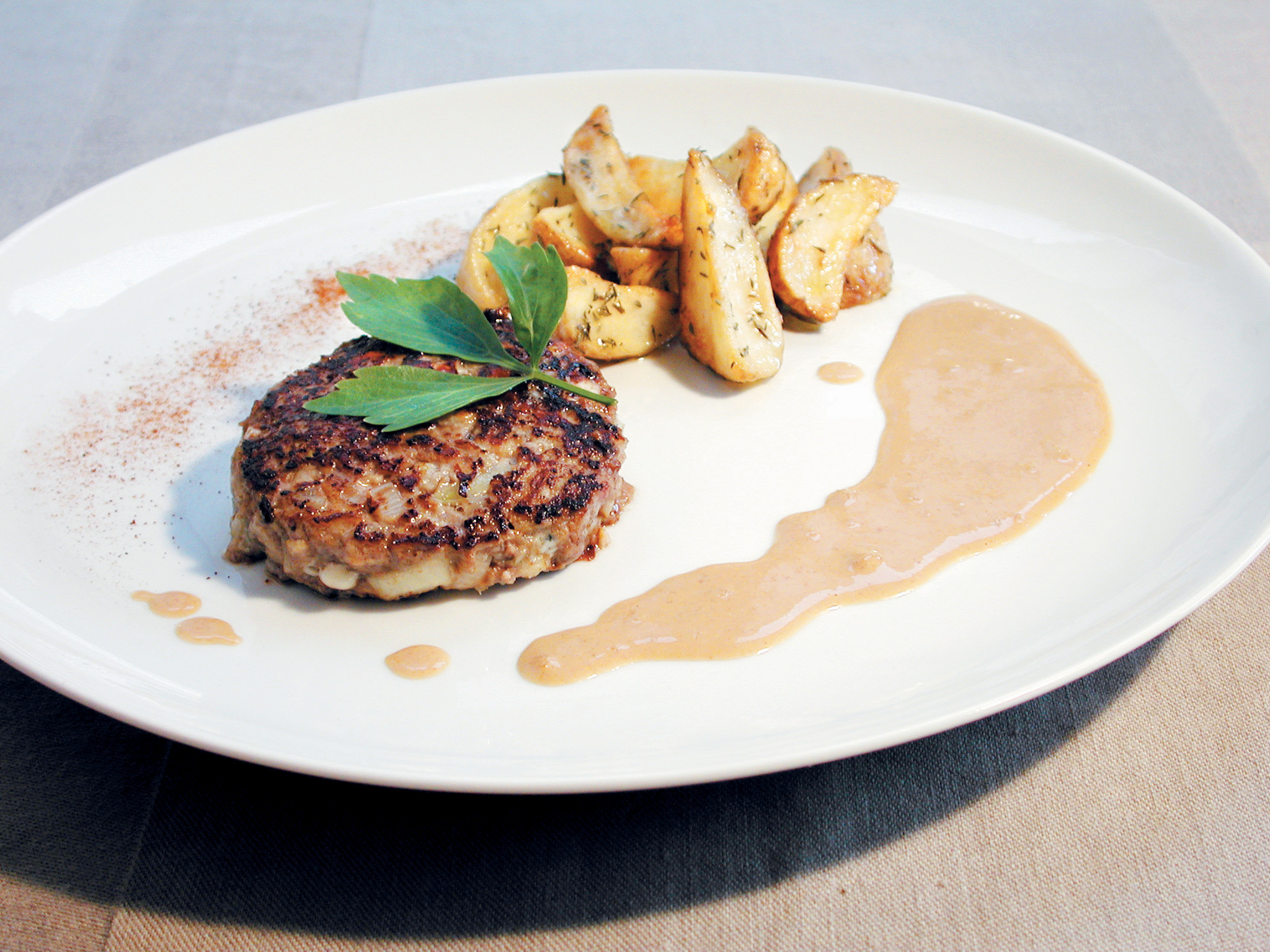 Köttfärsbiffar med rostad potatis och äppeltzatziki