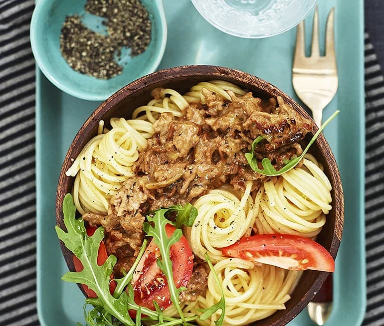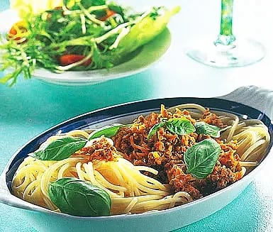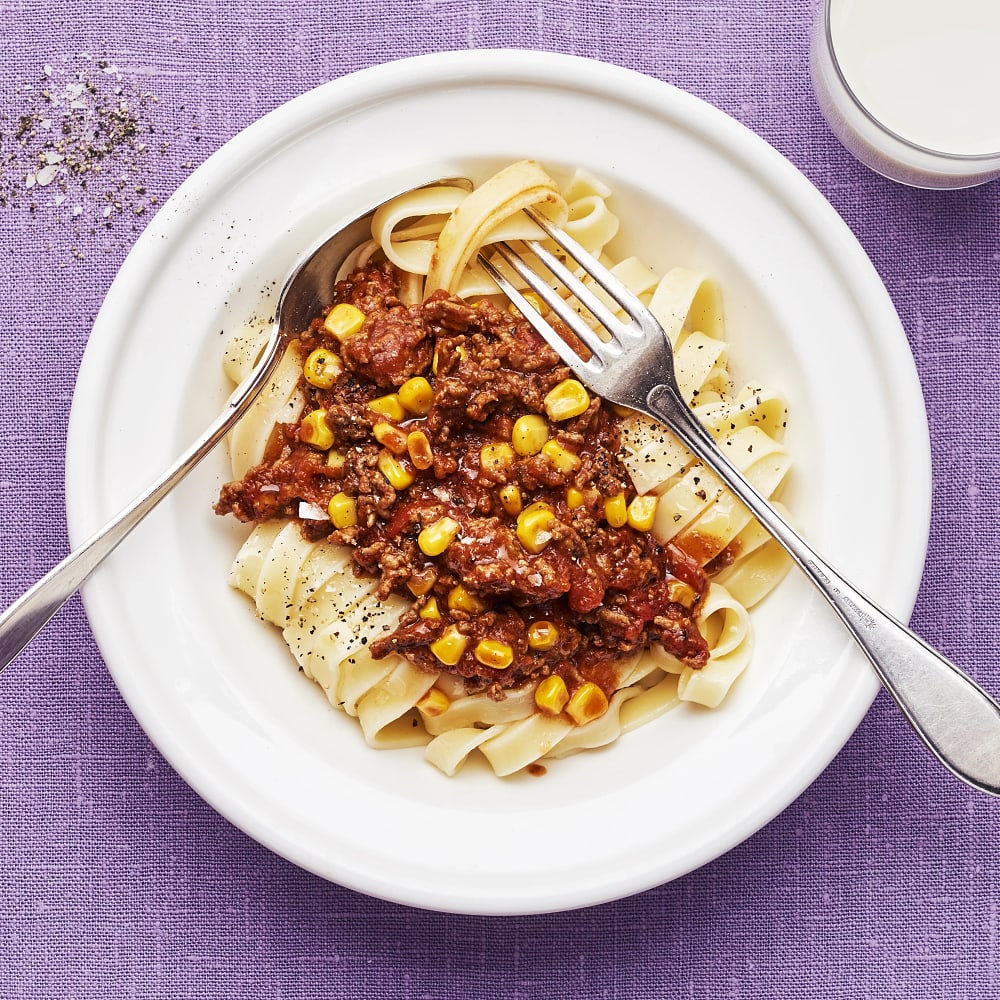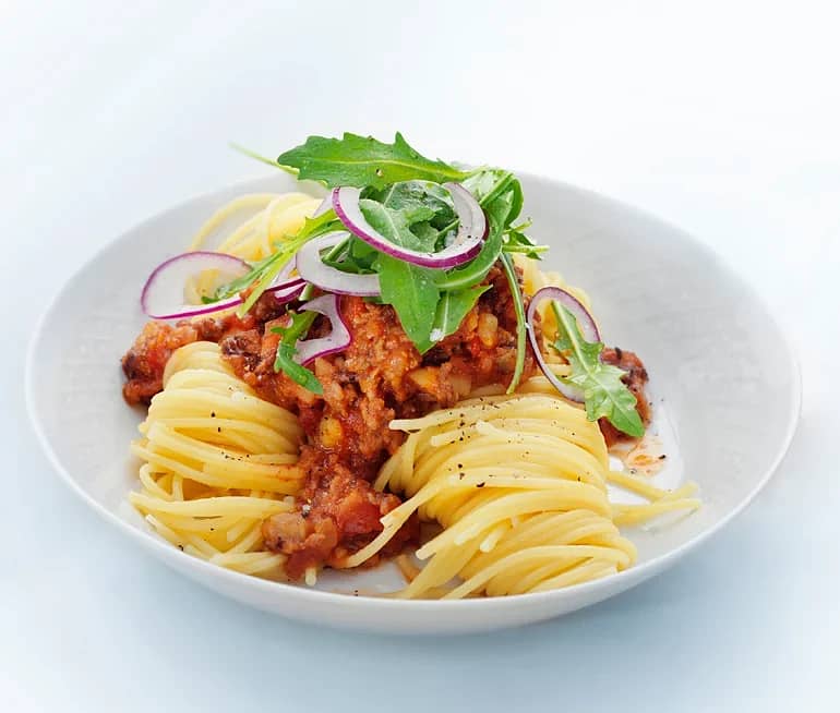 Muskelbyggarspaghetti med köttfärssås och sojabönor