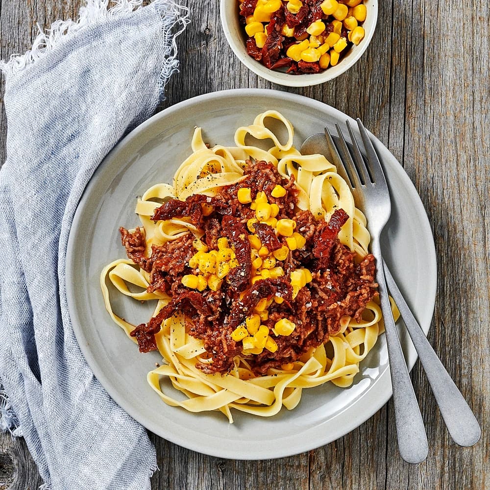 Tagliatelle med köttfärssås "osso buco" och gremolata