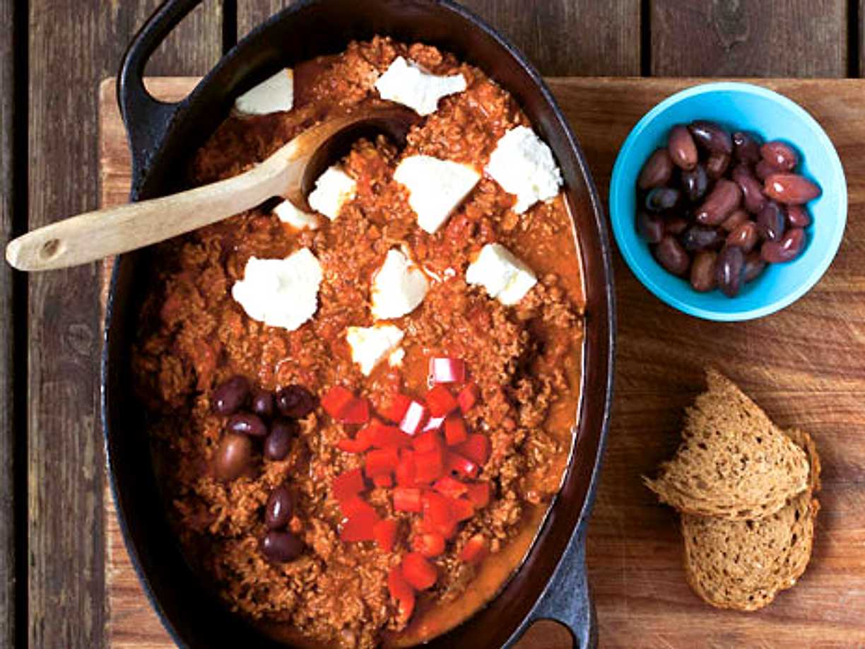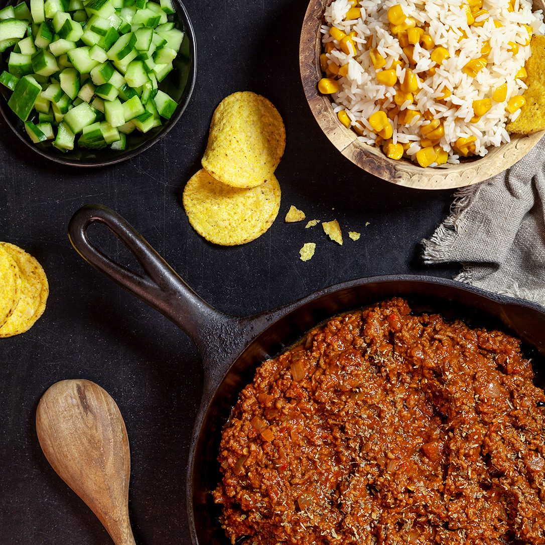 Mexikansk köttfärssås med krispigt majsris och nacho