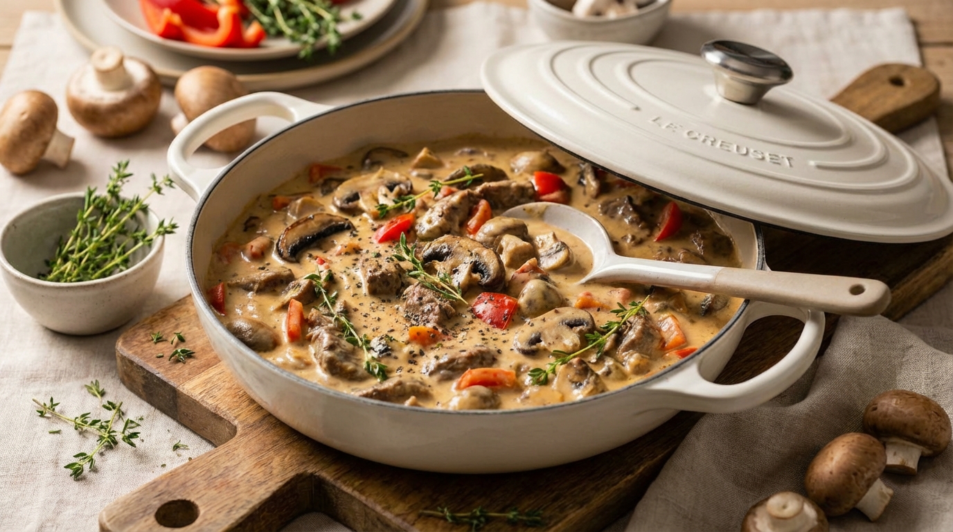 Mustig svamp och köttgryta