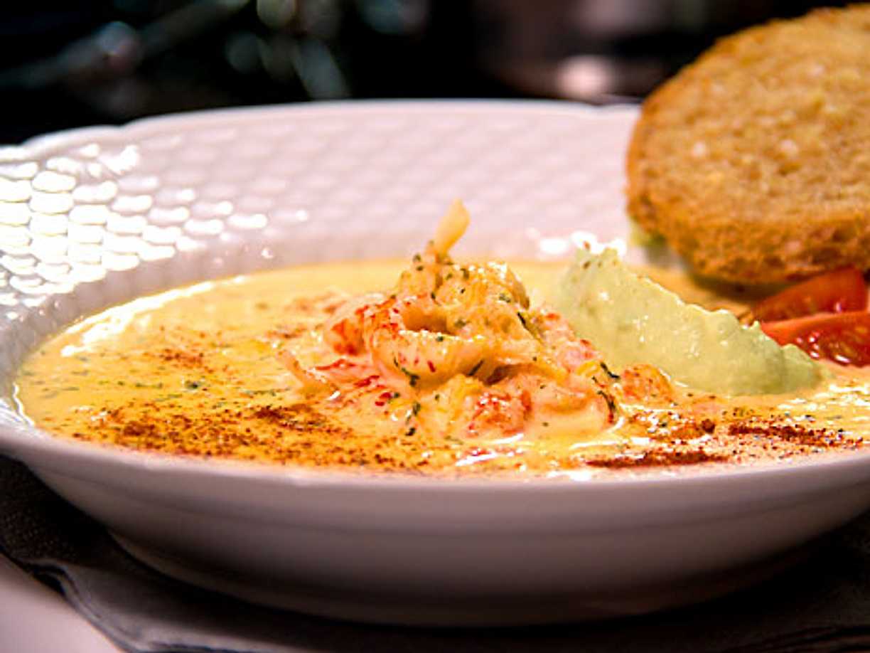 Krämig kräftsoppa med vitlöksbröd