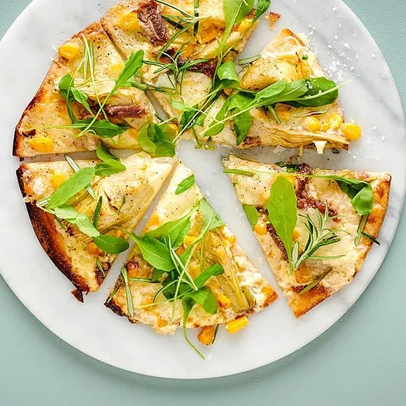 Pizza bianca med kronärtskocka och tryffelost