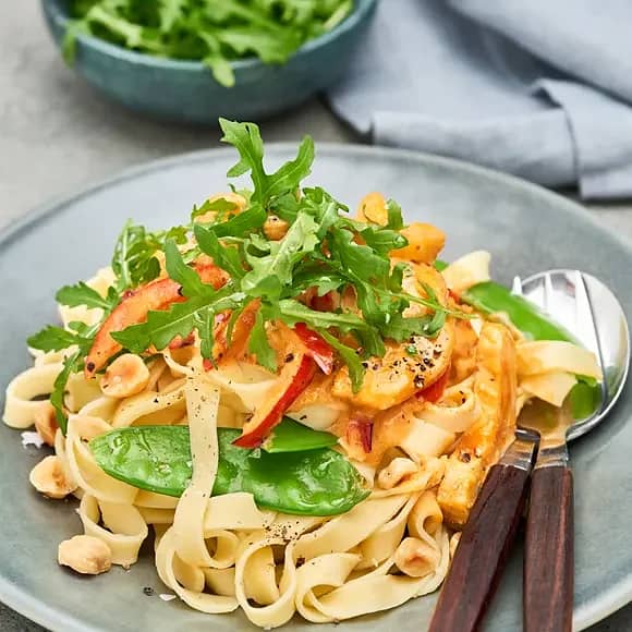 Fettuccine med kronärtskockor och hasselnötter