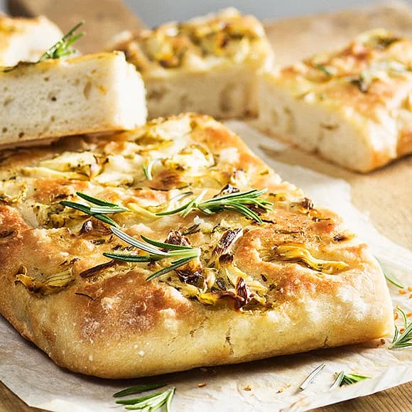 Focacciabröd med kronärtskocka, citron och örter
