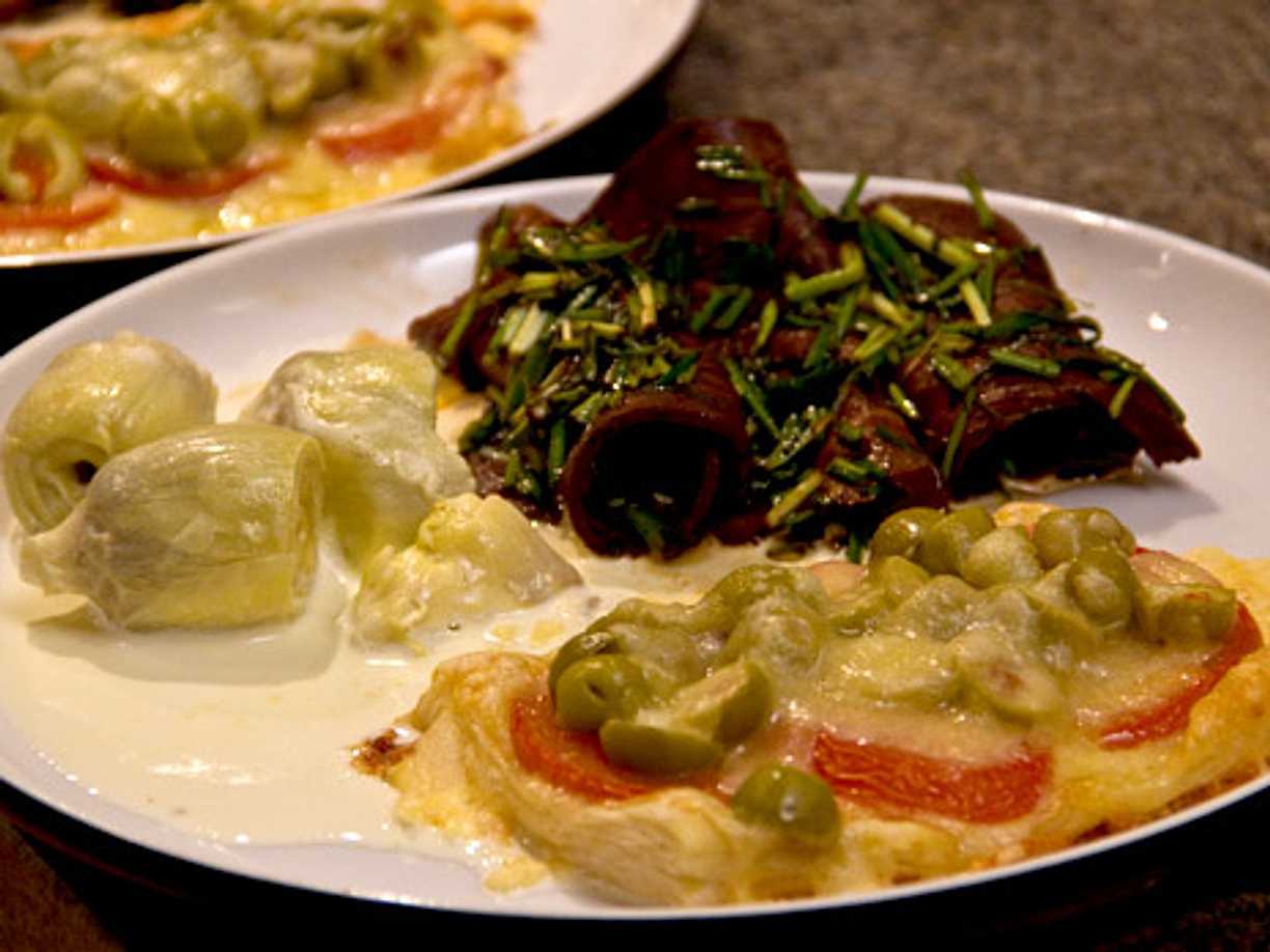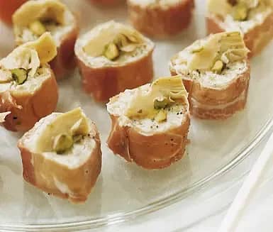 Serranorullar fyllda med olivost och kronärtskocka
