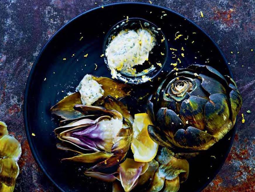 Kokt kronärtskocka med citron- och dragonsmör