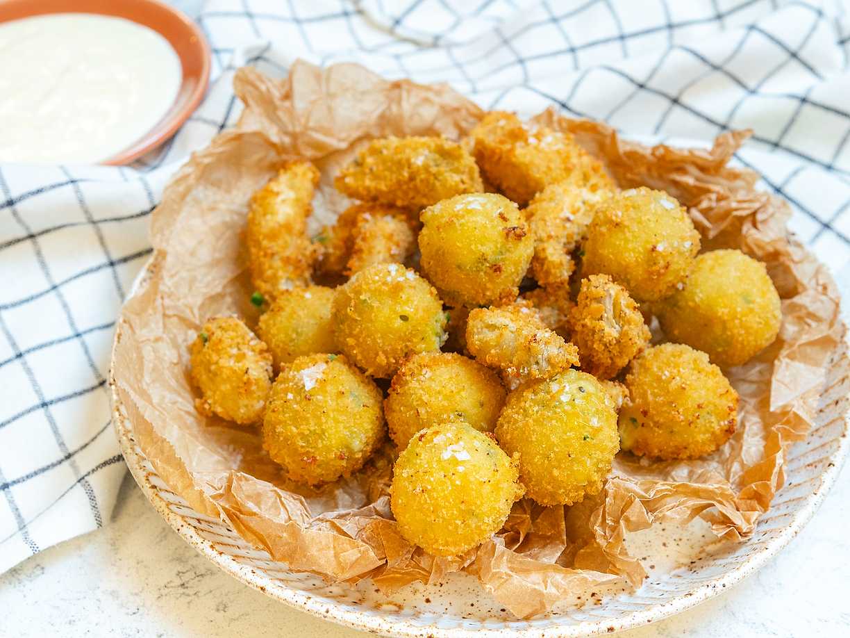 Friterade kronärtskockor med mynta, pecorino och citronaioli