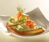 Crostini med dillkräm, kräftstjärtar och kronärtskocka