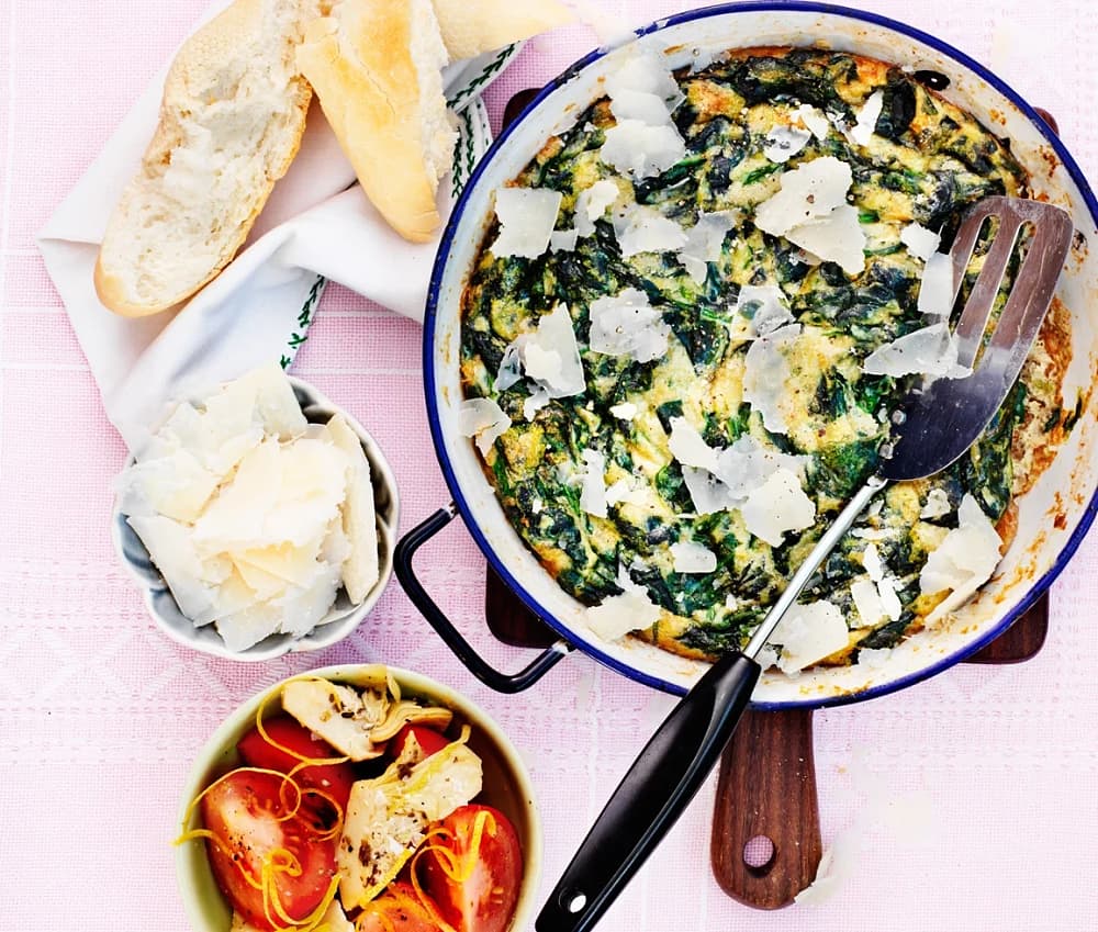 Spenatfrittata med citronmarinerade kronärtskockor