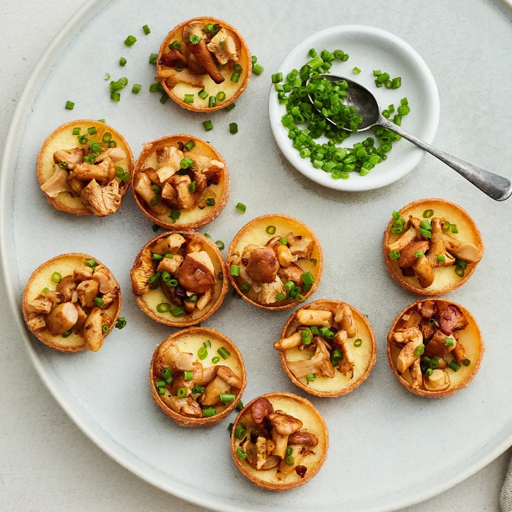 Krustader med svamp, rökt gräddfil och cheddarchips