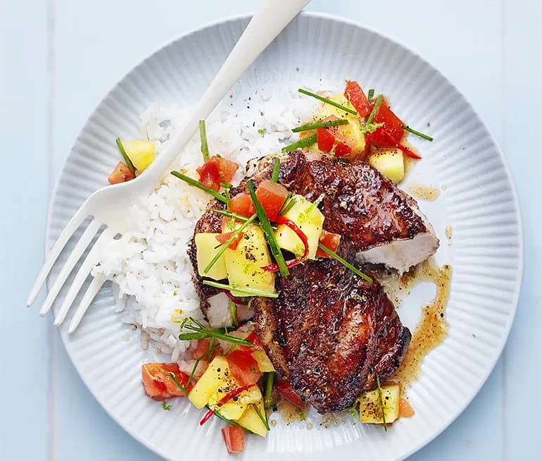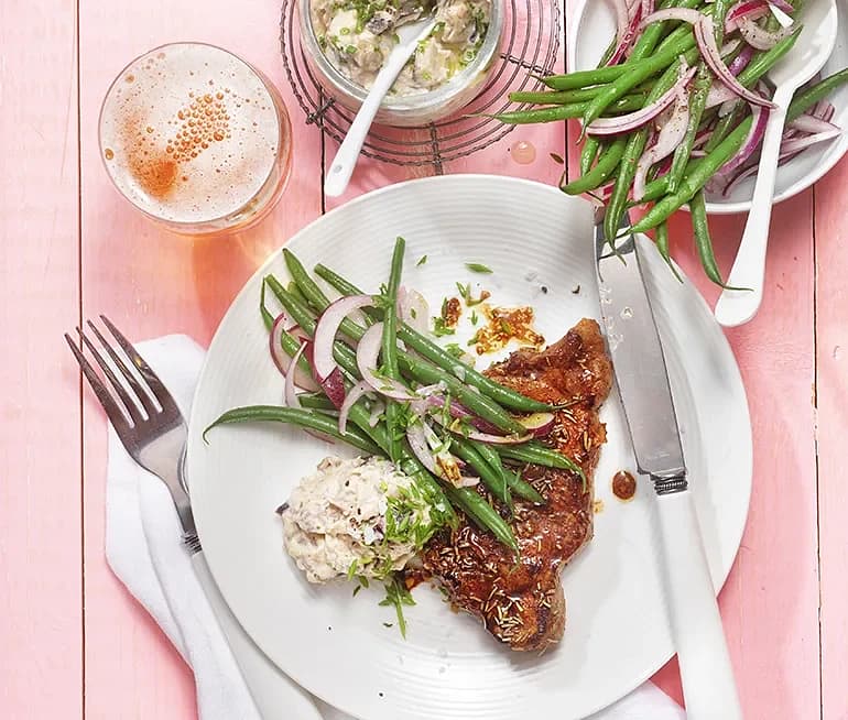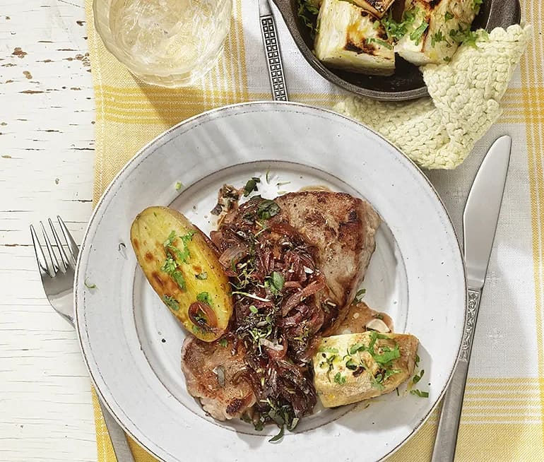 Kryddstekt fläskkotlett med rödlöksmarmelad