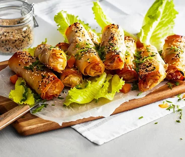 Filorulle med kryddstekt kyckling, lagrad ost och valnötter