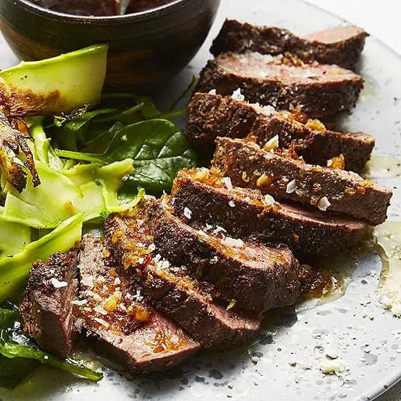 Kryddstekt rådjursfilé med enbärsgräddsås och äppelchutney