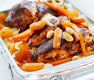 Kryddstekt kyckling med couscous, mandel och aprikoser