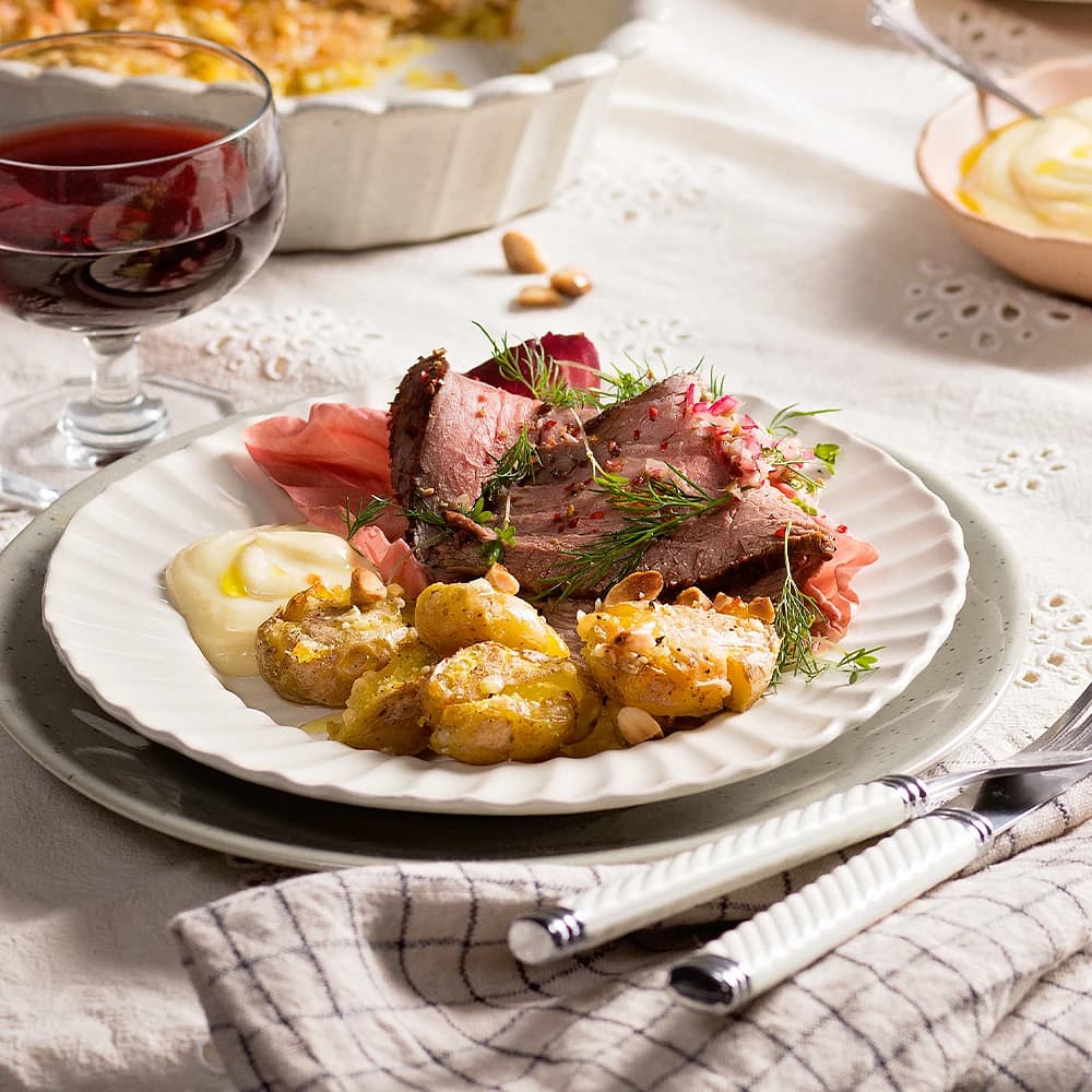 Kryddstekt rostbiff med kaprisgremolata och aioli