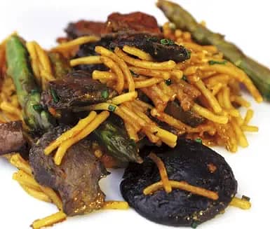 Spaghettipaella med kyckling och svamp