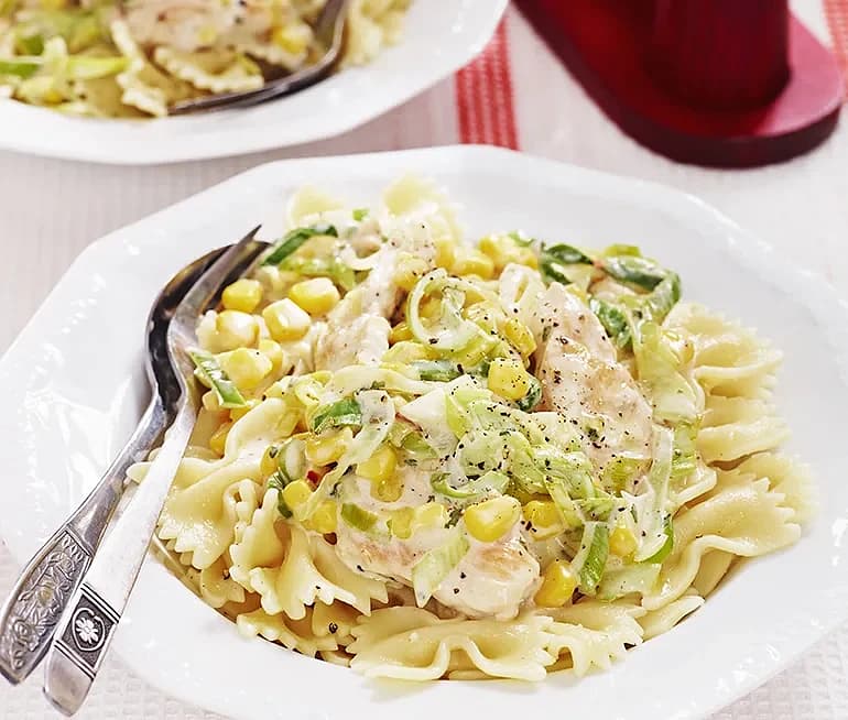 Pasta med kyckling och purjolökssås