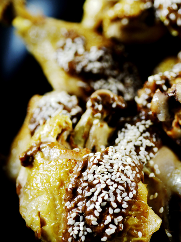 Terökt kyckling med sojapicklad svamp och sesammajjo