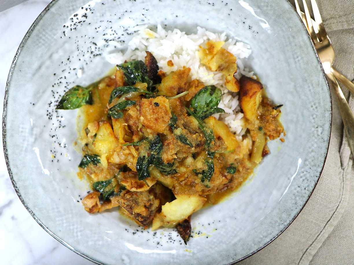 Currystekt kyckling med krämig purjolökspotatis