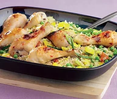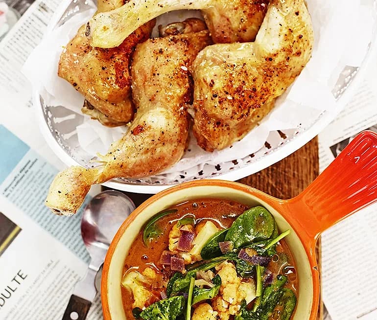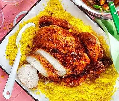 Helstekt kyckling med nordafrikanska grönsaker och harissa