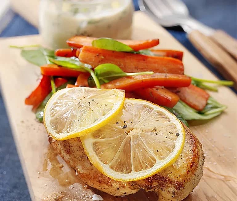 Citronstekt kyckling med äppel- och dillsås
