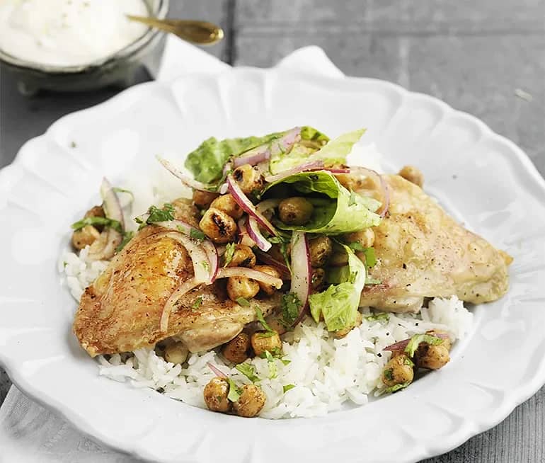 Ugnsstekt kyckling med kryddrostade kikärter