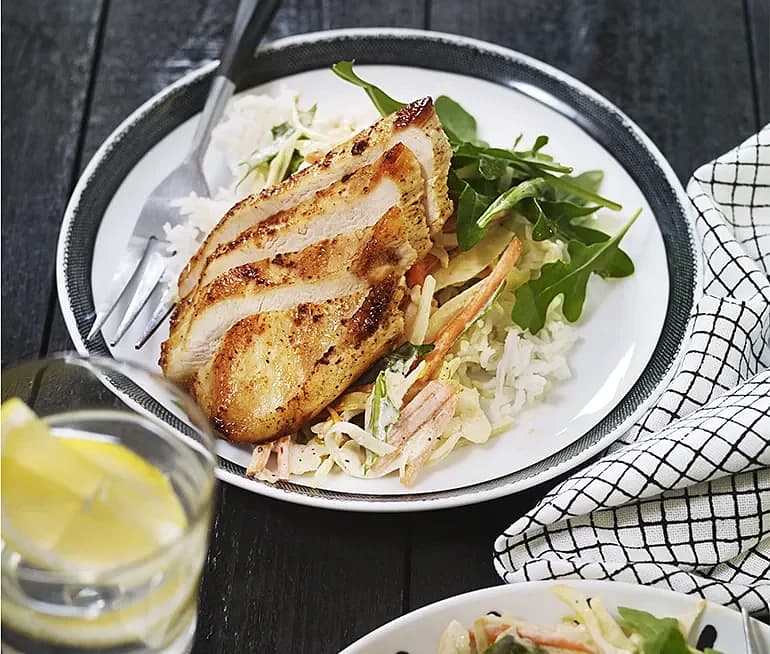 Kryddstekt kyckling med coleslaw
