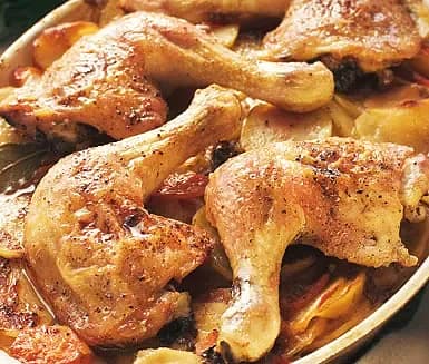 Vin- och äppelbräserad kyckling