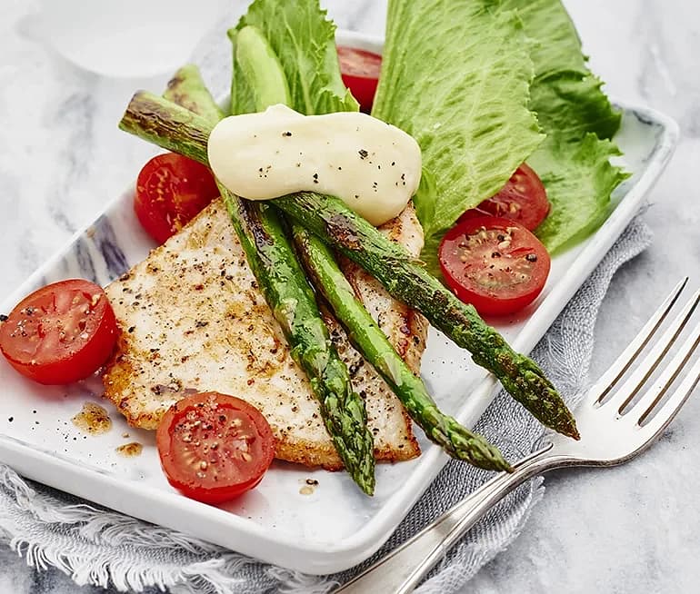 Rostad sparris med kyckling och aioli