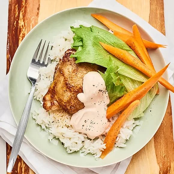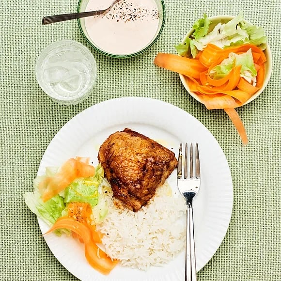 Frasig kyckling med kålsallad och koriandermajonnäs