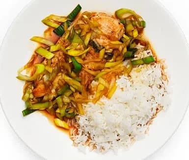 Kyckling med purjolök, soja och honung