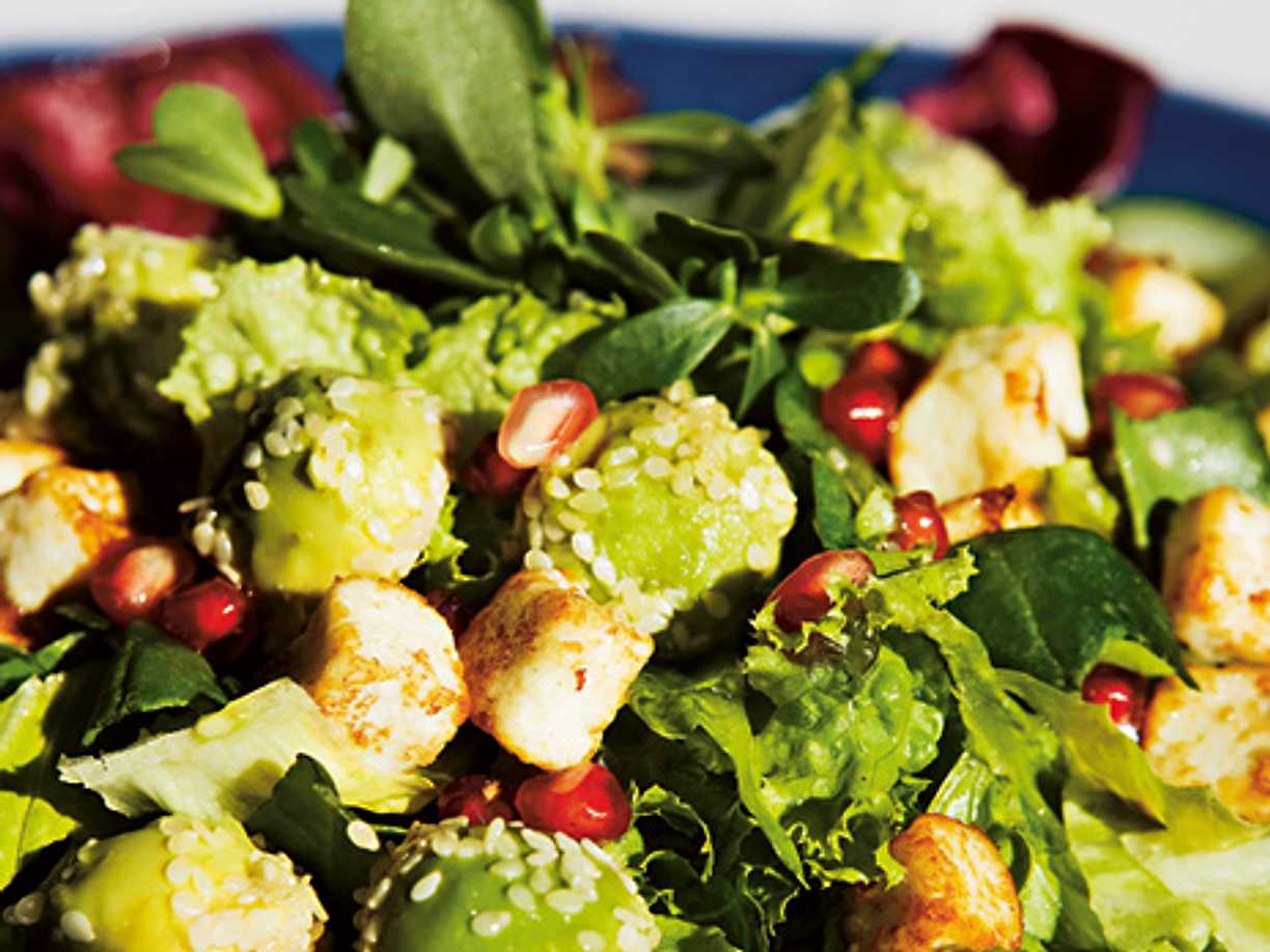 Granatäppelsallad med grillad kyckling och avokado
