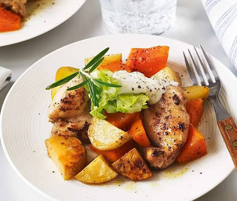 Rostad pumpa och kyckling med ost- och rosmarincreme