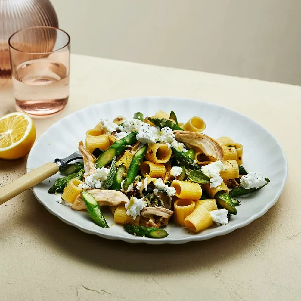 Pasta med kyckling, sparris och ricotta