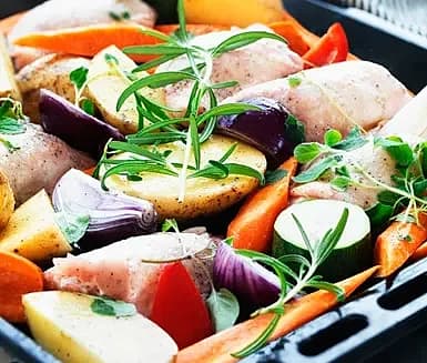 Apelsinstekta rotfrukter med kyckling
